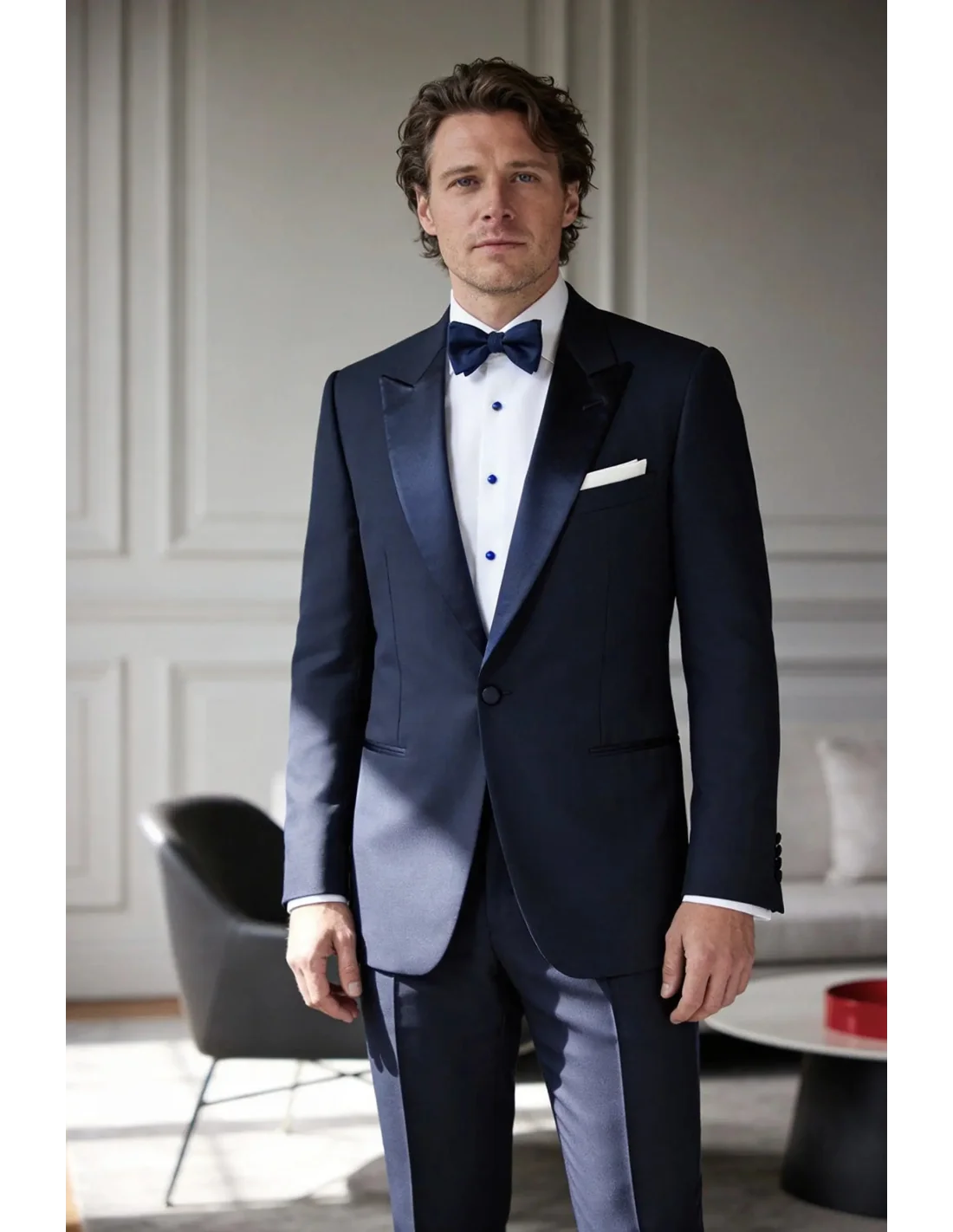 Découvrez le Smoking Bleu Moyen, l'alliance parfaite entre élégance et confort. Conçu pour les hommes modernes, ce smoking s'adapte à toutes les occasions, qu'il s'agisse d'un mariage, d'une soirée cocktail ou d'une cérémonie officielle. Sa teinte bleu profond apporte une touche de sophistication à votre garde-robe, tout en restant intemporelle.