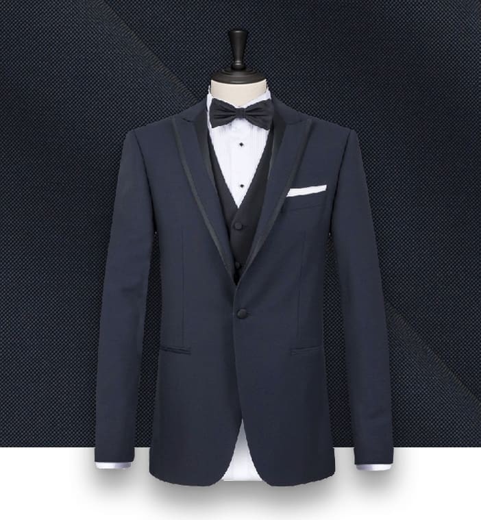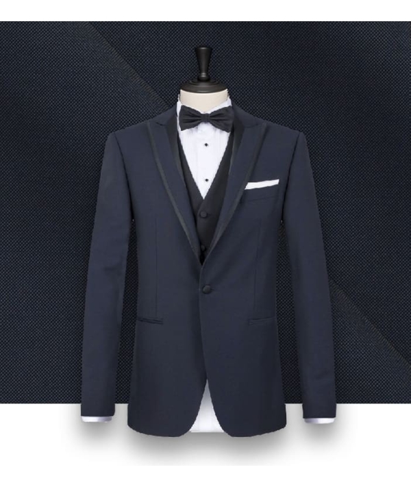 Faites de chaque moment un souvenir inoubliable avec notre smoking bleu nuit galon soie.