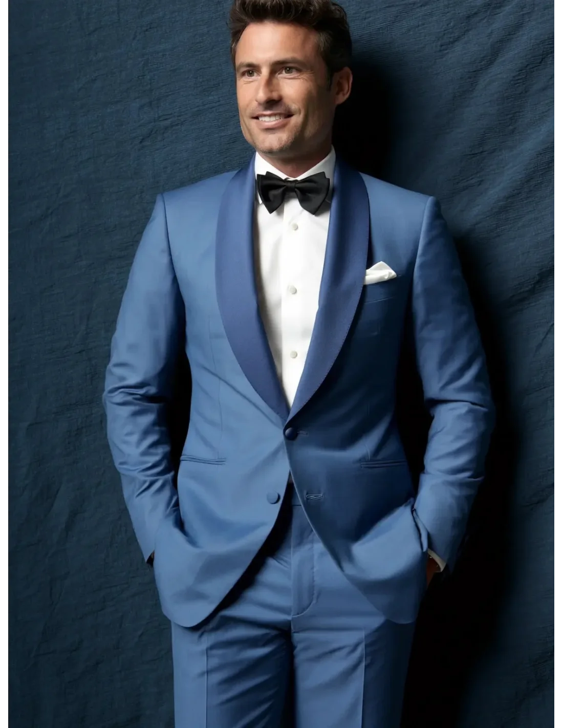smoking mariage bleu méditerranéen col châle