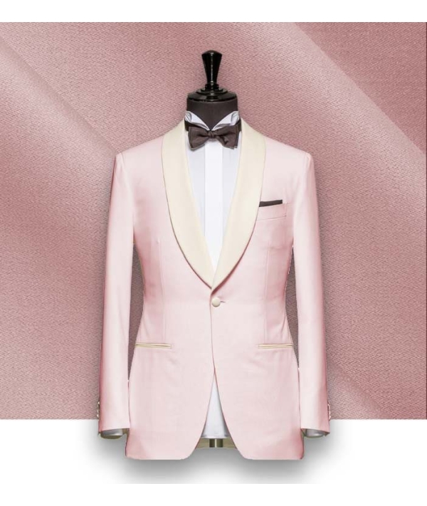 Smoking rose col châle. Élégant et sophistiqué, ce smoking est parfait pour les occasions formelles. Le col châle ajoute une touche de glamour. col revers châle contrasté en satin crème Poches passepoilées, 1 bouton soie
