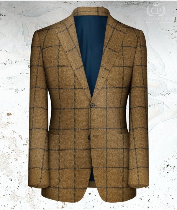 Cette Veste marron clair large carreau est réalisée en sur-mesure, d'autres styles sont disponibles sur les recommandations de votre conseiller tailleur : Coupe : croisée Finition : poches droites ou en biais, revers en pointe Boutons : contrastésLe style casual chic prend tout son sens grâce aux jeux des contrastes. Couleurs, matières, finitions, le champs des possibles s'élargit. Le sur-mesure vous offre la possibilité de jouer avec tous ces paramètres. Cette Veste marron clair large carreau est entièrement personnalisable. Toutes les possibilités de finitions que nous vous proposons n'ont qu'un objectif : que votre vêtement corresponde à 100% à votre style, à votre image et à votre façon de vivre. Votre conseiller-tailleur vous accompagne pour vous permettre de concrétiser votre vêtement. Les conseils Bonne Gueule Costume Privé Paris vous propose un service de réalisation de costumes sur-mesure digne des grandes maisons de luxe. Associant une qualité remarquable des tissus, une fabrication respectueuse de la tradition, un conseil passionné et exigeant et enfin une service personnalisé qui vous fait changer votre perception du shopping. Le sur-mesure est avant tout un art de vivre, c'est notre philosophie. La qualité remarquable des tissus est garantie par la collaboration avec les plus grands drapiers internationaux tels Loro Piana, Holland & Sherry, Scabal et Dormeuil. La confection n'est pas en reste. A quoi servirait l'avoir une Ferrari sur le châssis d'une Simca? L'atelier a été sélectionné avec soin pour garantir la meilleure tenue de votre vêtement sur-mesure dans le temps et le respect des délais de production. Cet atelier confectionne des marques prestigieuses, telles que Givenchy, Kenzo et Dormeuil Sur-Mesure. Le type de montage que j'ai retenu pour les collections business est un montage semi-traditionnel. Il respecte le savoir-faire et est un très bon compromis entre excellente tenue et cout raisonnable. Pour les puristes, il est aussi possible de choisir un entoilage total, ou alors un style casual sans entoilage pour des blazers-chemises très italiens. La coupe est enfin un critère clé pour votre style. Je n'ai pas de dictat car chacune fait du sens en fonction de votre morphologie et de l'esprit que vous voulez transmettre. Qu'elle soit anglaise, romaine ou napolitaine, votre épaule s'inscrit dans votre personnalité. Au même titre que l'ajustement d'une taille, d'une manche ou d'une cuisse. Que le choix du type de padding pour votre épaulette. Si vous avez des exigences particulières, je serai ravi de m'y conformer. Enfin le service d'exception qui vous fait oublier que vous faites du shopping. Vous êtes très occupés, les déplacements dans Paris sont fastidieux, le week-end vous avez mieux à faire que courir les boutiques. Nous venons à vous. Au bureau ou à domicile, nous nous déplaçons pour que vous sélectionniez vos tissus, pour prendre vos mesures ou pour réaliser votre essayage. Nous vous livrons vos vêtements sur le lieu de votre choix. Vous n'avez pas la possibilité de nous accueillir, rencontrons nous dans l'un de nos showrooms parisiens. Vous ne savez pas où faire entretenir vos costumes? Grâce à notre Groom Service, nous passons récupérer vos vêtements. 3 jours plus tard ils vous reviennent. L'art de vivre en sur-mesure. Veste marron clair large carreau Veste marron clair large carreau