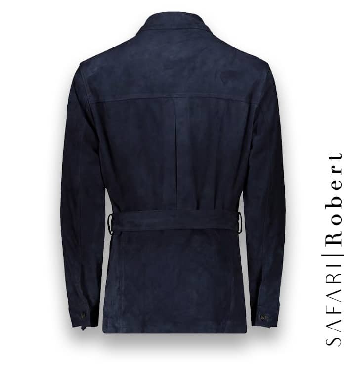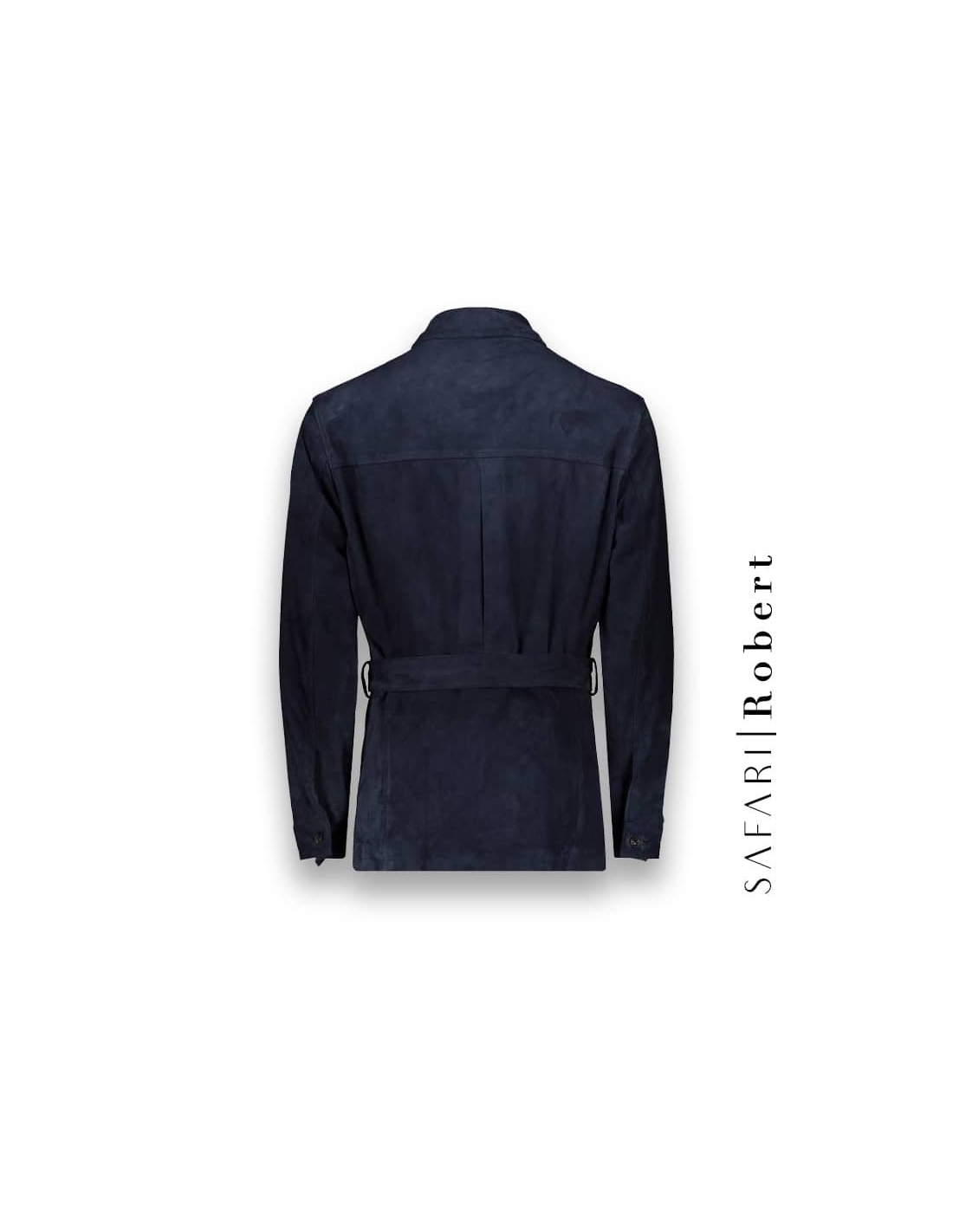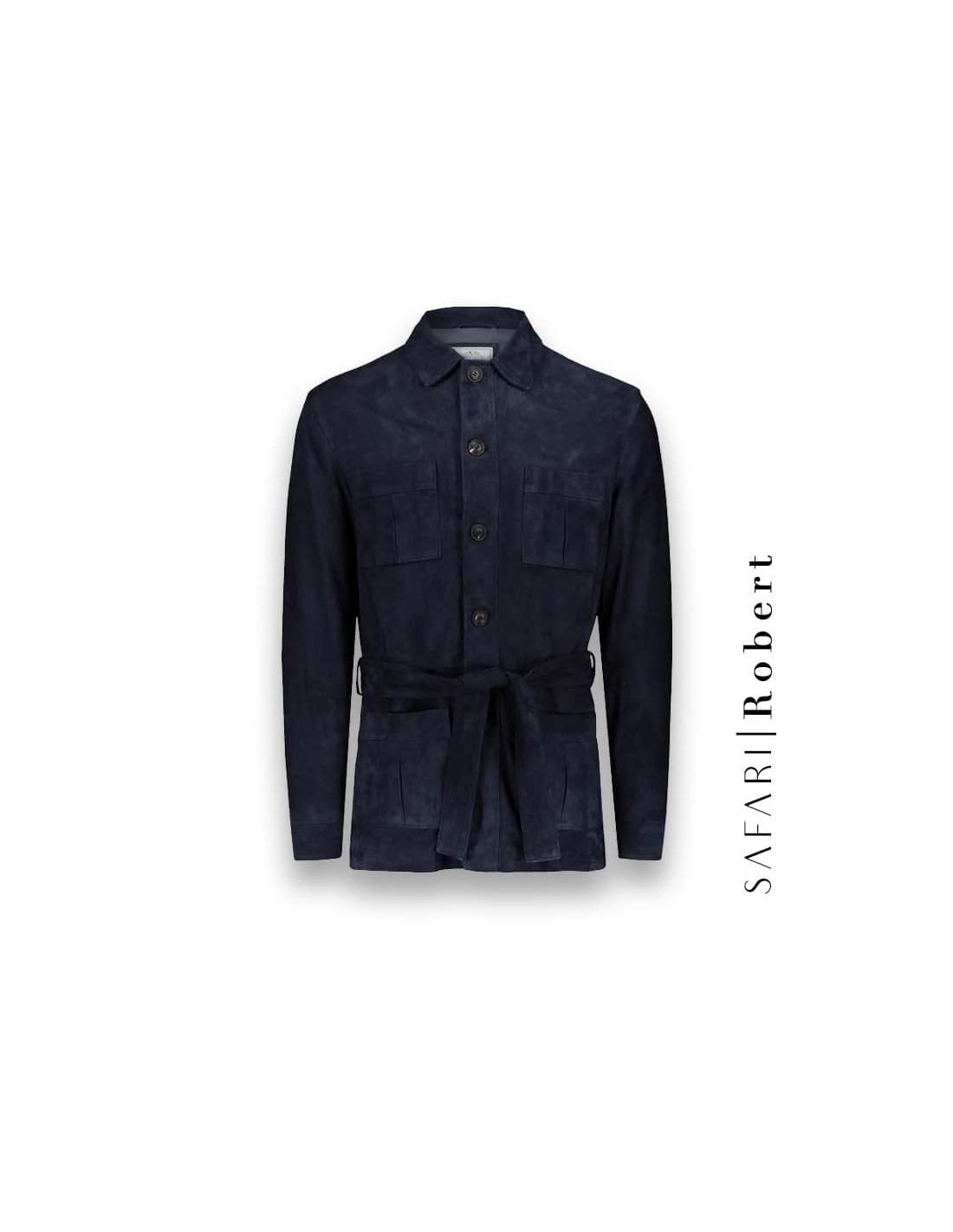Veste Safari Nubuck bleu Robert Cette veste de safari incarne une silhouette imposante mais simple grâce à sa coupe symétrique. Elle a été enrichi de quatre poches avant, d'une ceinture en nubuck, de poignets baril (boutonnage chemise) et de boutons en corne. Fabriquée de manière artisanale par des artisans italiens, avec un savoir-faire de confection transmis de génération en génération. L'intérieur est complètement fini dans une élégante doublure en soie en été ou en cachemire confortable pour les modèles hiver. En route pour l'aventure avec cette veste Safari Nubuck bleu Robert est un modèle conçu pour toute l'année. Grâce à sont cuir nubuck il s'affranchit des saisons et en fait une veste sport protectrice pour l'extérieur. Découvrir la Collection Blouson Cuir choisir son blouson sur mesure