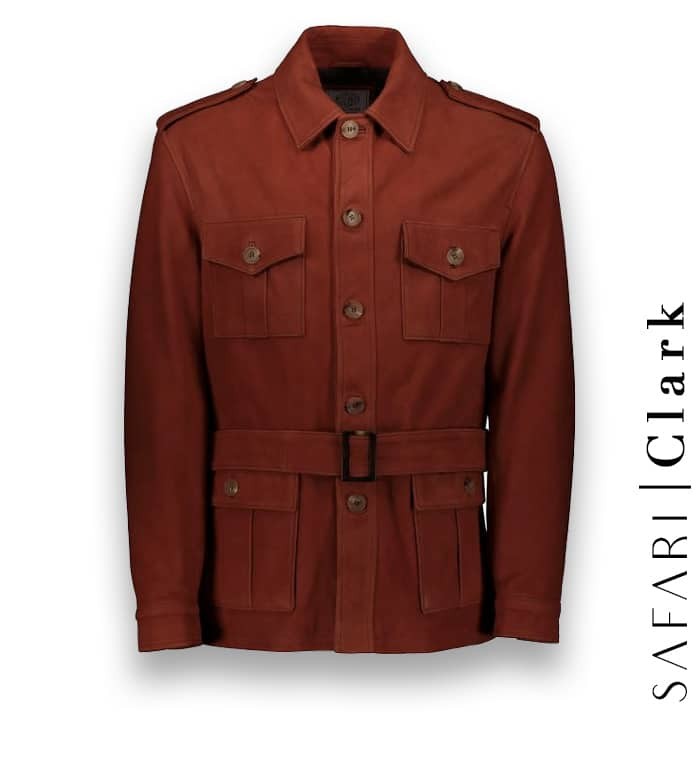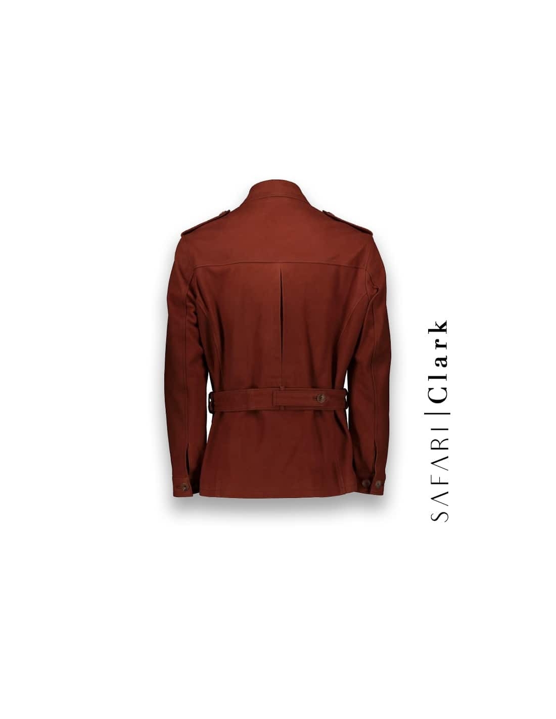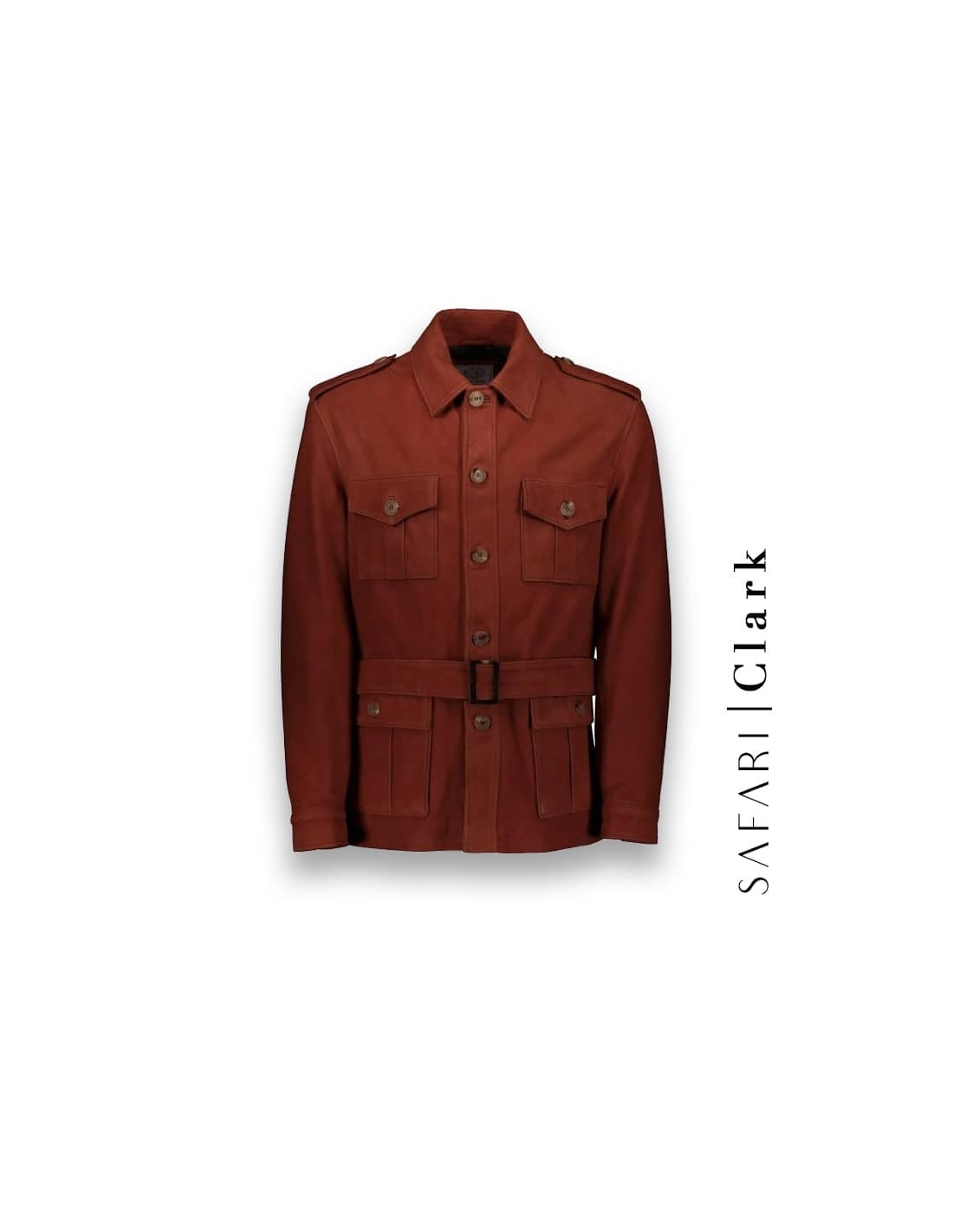 Veste Safari Nubuck orange Clark Cette veste de safari incarne une silhouette imposante mais simple grâce à sa coupe symétrique. Elle a été enrichi de quatre poches avant, d'une ceinture en nubuck, de poignets baril (boutonnage chemise) et de boutons en corne. Fabriquée de manière artisanale par des artisans italiens, avec un savoir-faire de confection transmis de génération en génération. L'intérieur est complètement fini dans une élégante doublure en soie en été ou en cachemire confortable pour les modèles hiver. En route pour l'aventure avec cette veste Safari Nubuck orange Clark est un modèle conçu pour toute l'année. Grâce à sont cuir nubuck il s'affranchit des saisons et en fait une veste sport protectrice pour l'extérieur. Découvrir la Collection Blouson Cuir choisir son blouson sur mesure