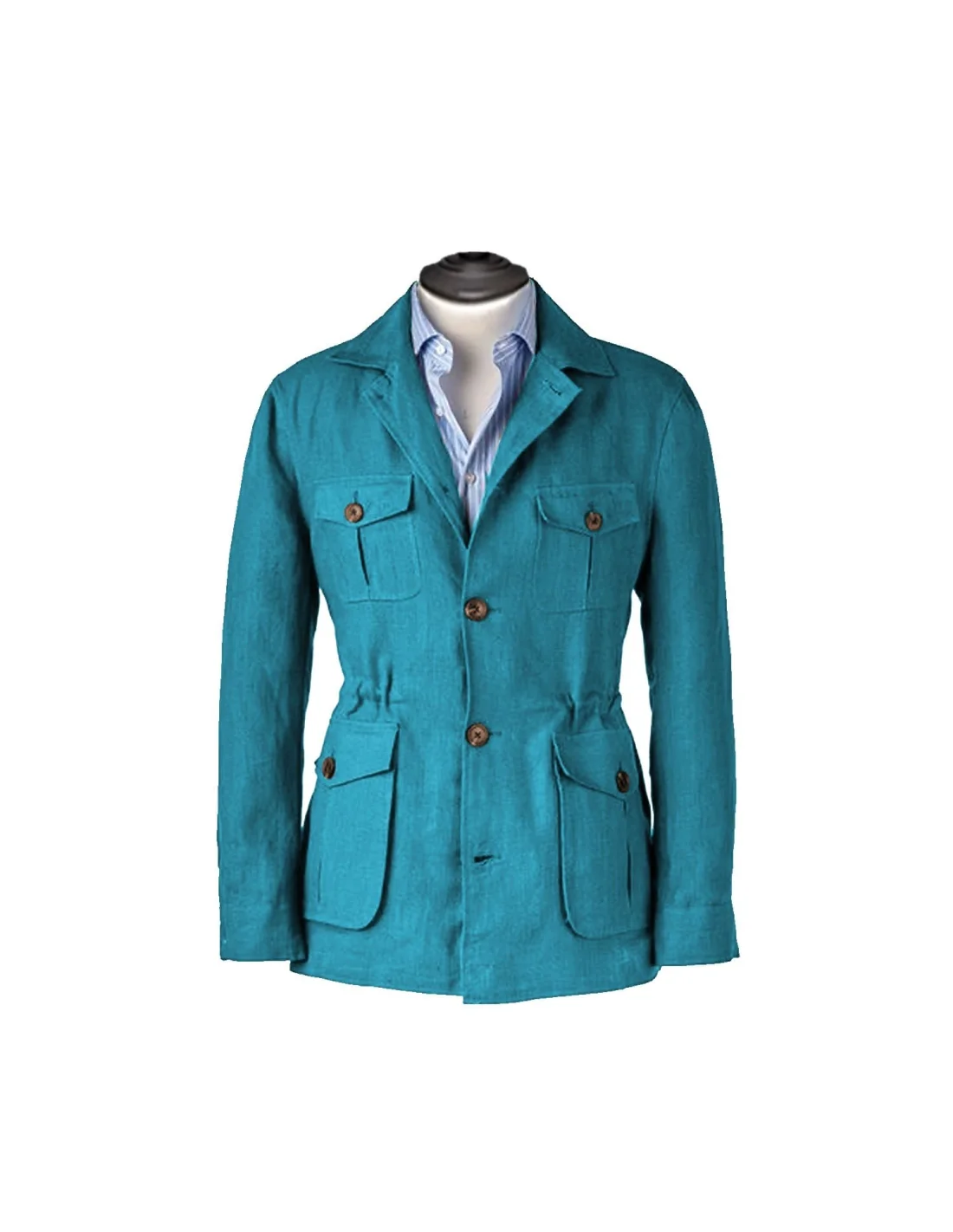 Veste saharienne lin bleu turquoise